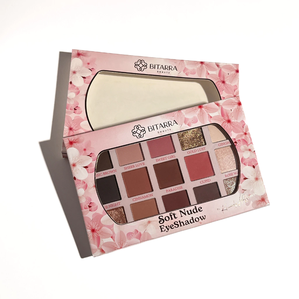 2 - Paleta SOFT NUDE EYESHADOW transmite delicadeza e romantismo, com 15 cores sofisticadas e delicadas.